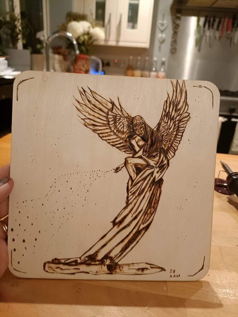 Pyrography pieces created using a pyrography tool with designs burnt in to wood. Available to order and commisions undertaken.